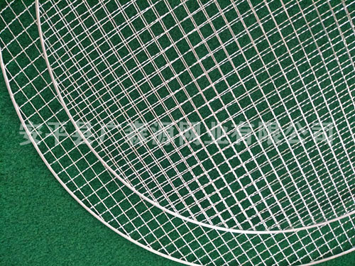 焊邊圓形燒烤網(wǎng)一般外框絲為:3.0mm 網(wǎng)絲 0.8-1.8mm 網(wǎng)孔 1.0-1.5mm